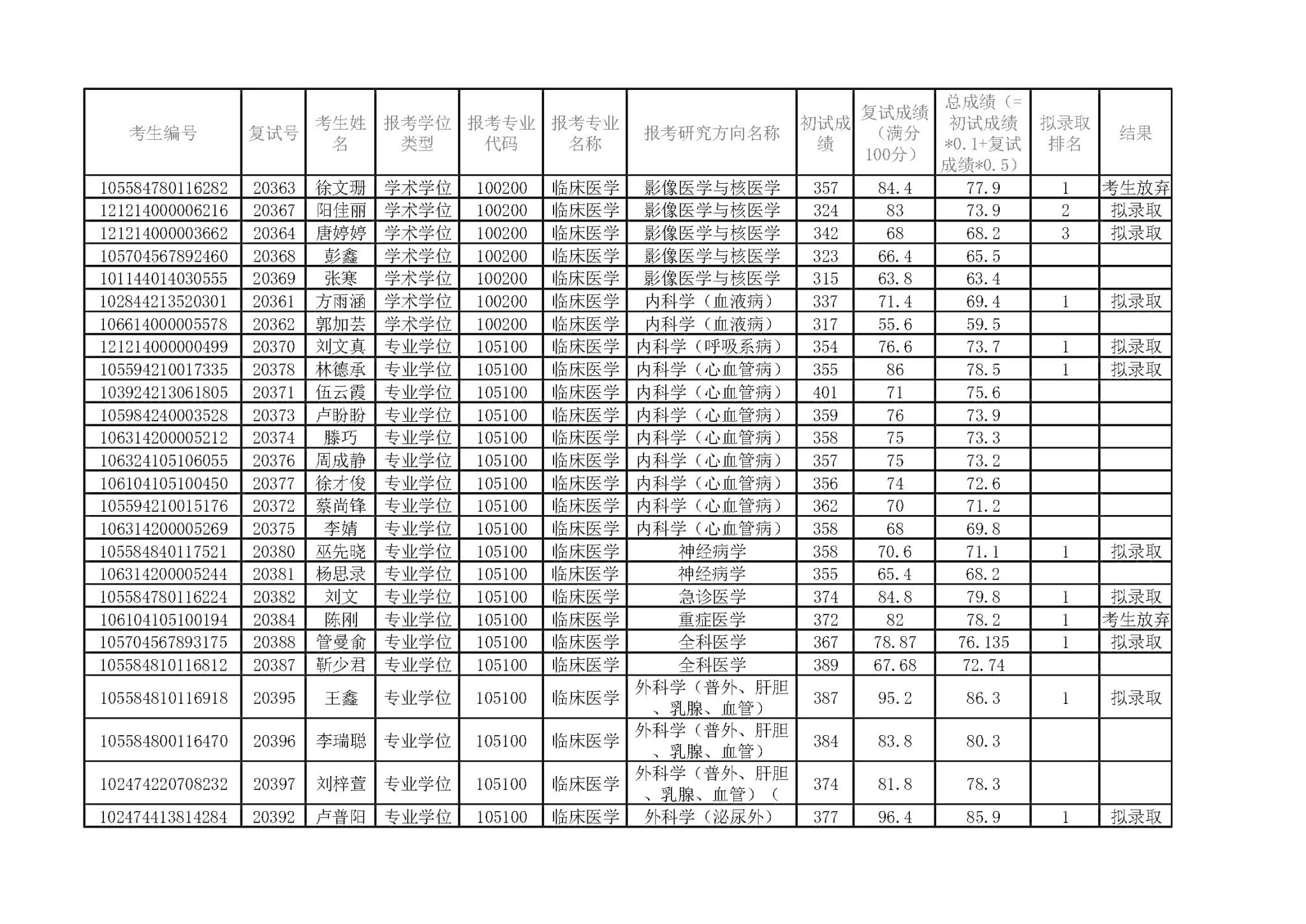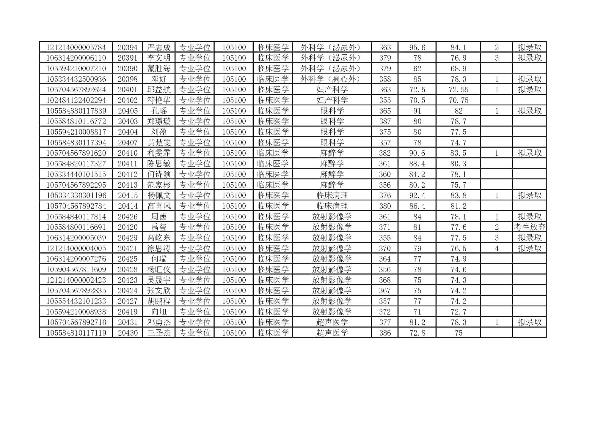 您好!以下信息为广州医科大学附属市一人民医院2024年4月12日硕士研究生招生调剂复试成绩和拟录取结果。拟录取考生请于此公告发布之日起1周内将个人报名材料纸质版原件提交至学科秘书处。