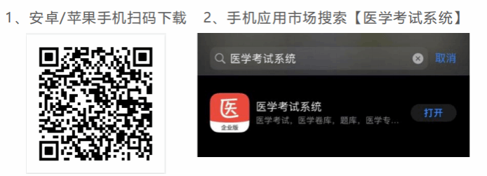 ④考前下载“医学考试系统”APP,安装二维码如下,考试账号统一导入,无需个人注册。
