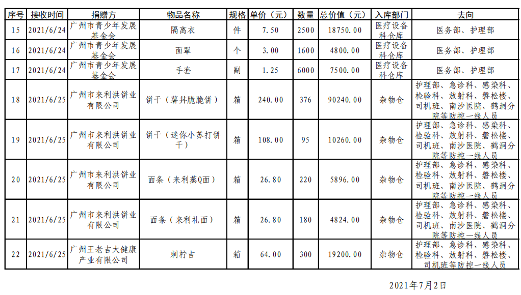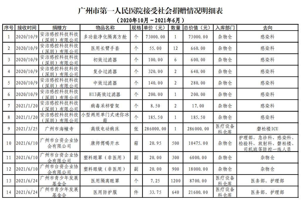 广州市第一人民医院关于接收社会捐赠物资清单的公示