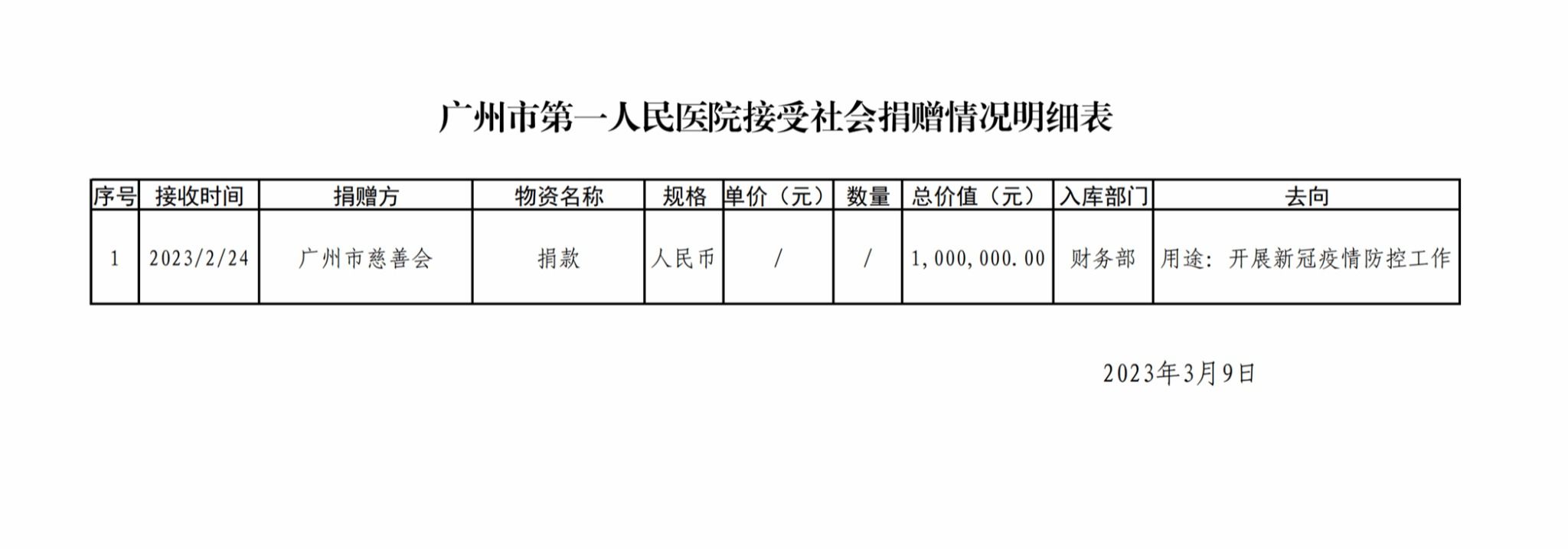 广州市第一人民医院关于接收社会捐赠物资清单的公示