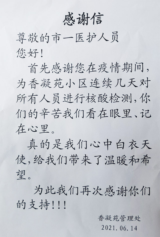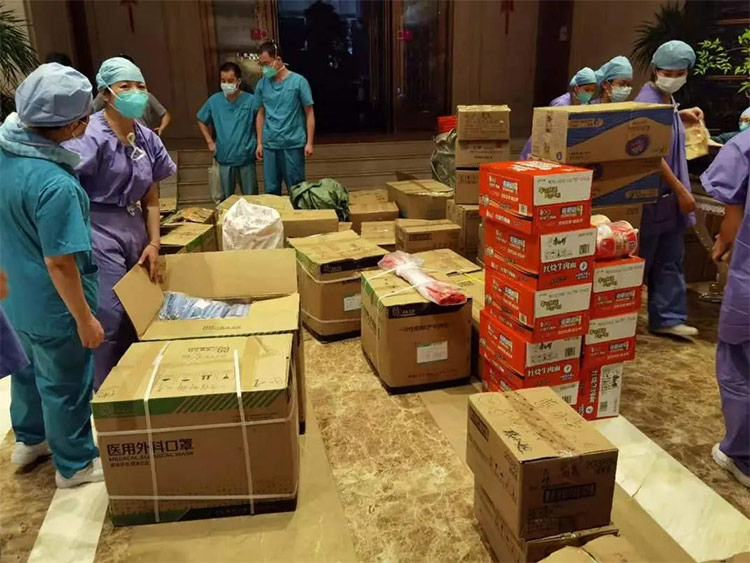 市一后方物资储备迅速,传递爱心。医院党委、党办、工会、医务部和护理部始终惦记着每位攻坚队员,力求给予攻坚队提供全方位的医疗、生活及队员家属的生活保障。送来了满满的爱意和关怀。