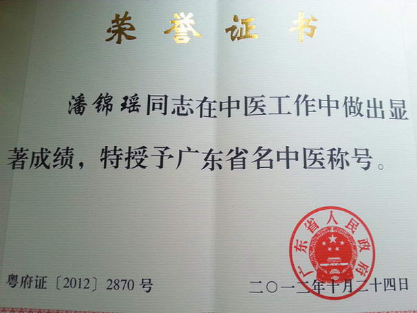 我院中医科主任医师潘锦瑶荣获广东省名中医称号