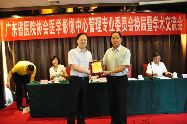 2014年10月10日,广东省医院协会第三届医学影像管理专业委员会换届暨学术交流会议在广州市金城宾馆召开。我院副院长江新青教授当选为新一届主任委员、放射科副主任医师刘伟锋担任专委会秘书。 广东省医院协会胡荣枢副...