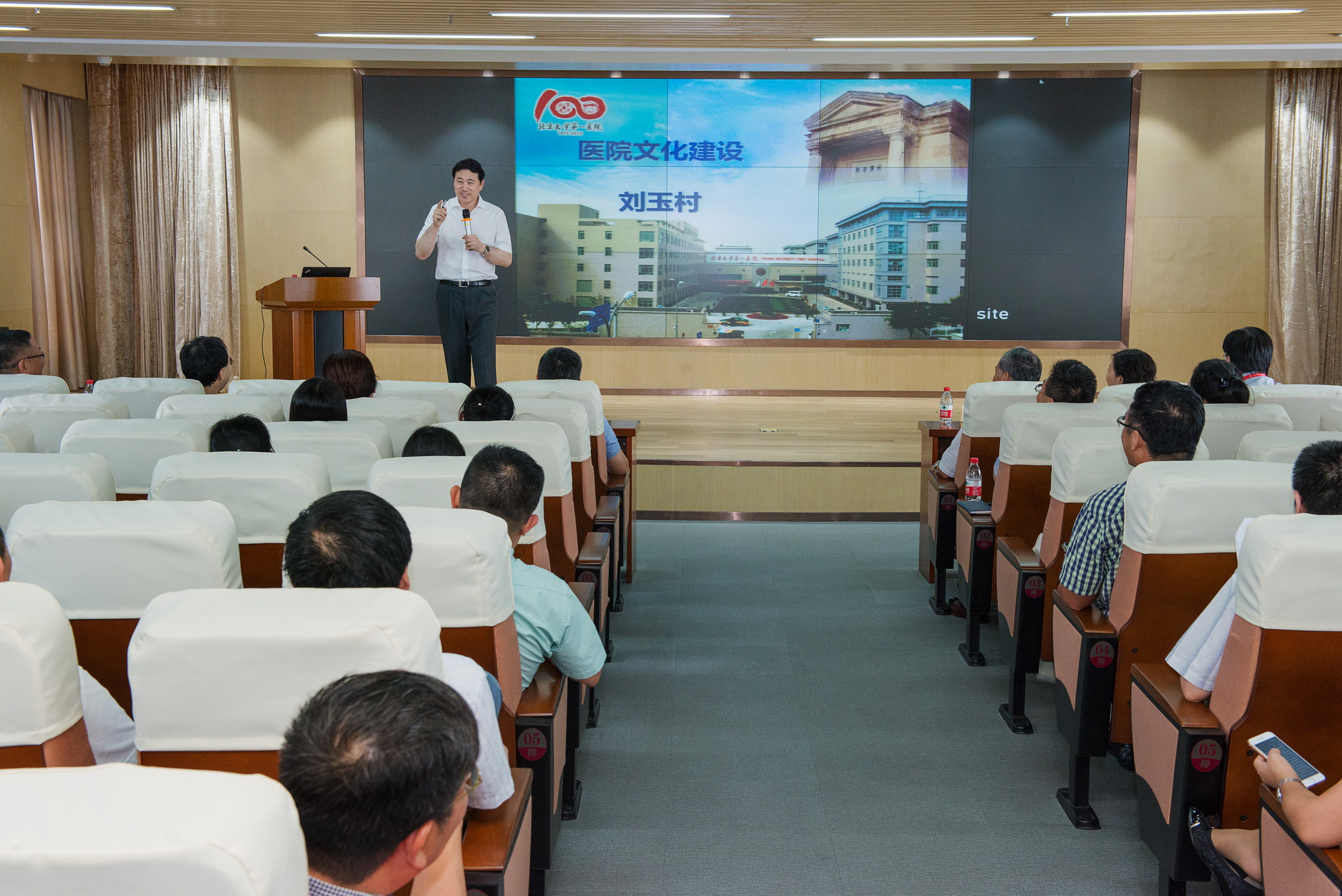 7月20日下午,广州市第一人民医院英东门诊九楼学术报告厅座无虚席,北京大学医学部党委书记刘玉村受邀为医院中层干部带来了一场有关医院文化建设的精彩报告。全体院领导及全院中层干部近300人参加了报告会。 刘玉村书...