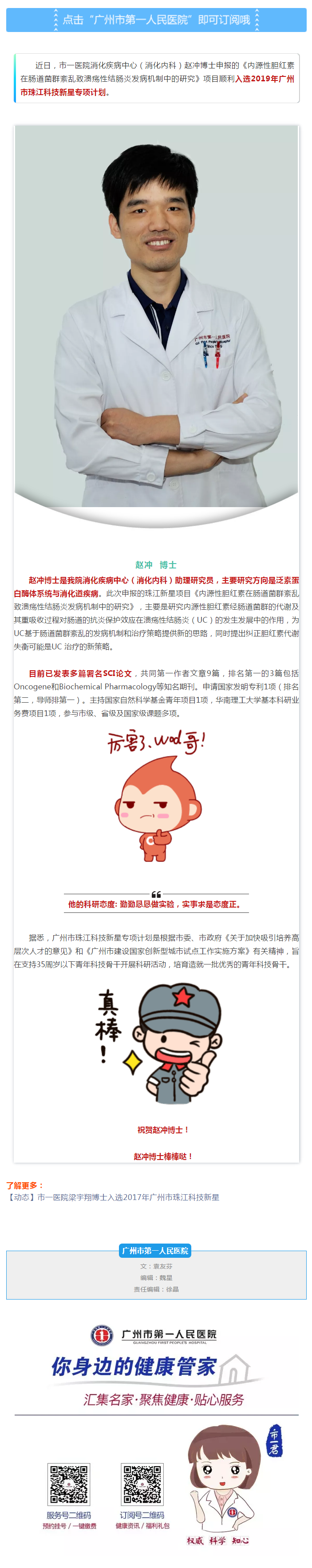 【动态】市一医院赵冲博士入选2018年广州市珠江科技新星