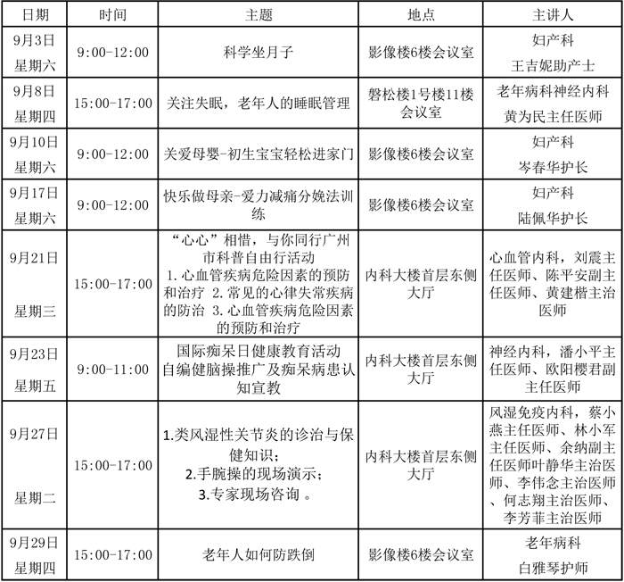 2016年9月健康教育安排