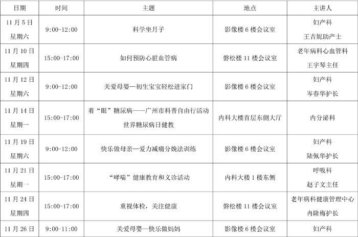 2016年11月健康教育安排
