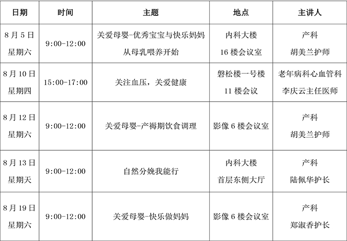 2017年8月健康教育讲座安排