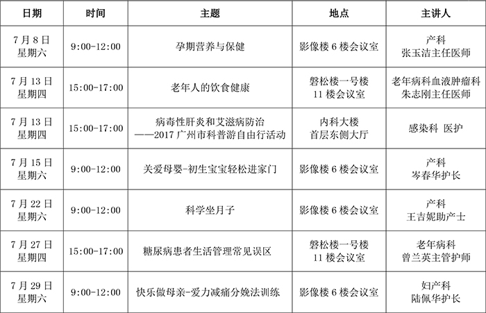 2017年7月健康教育安排