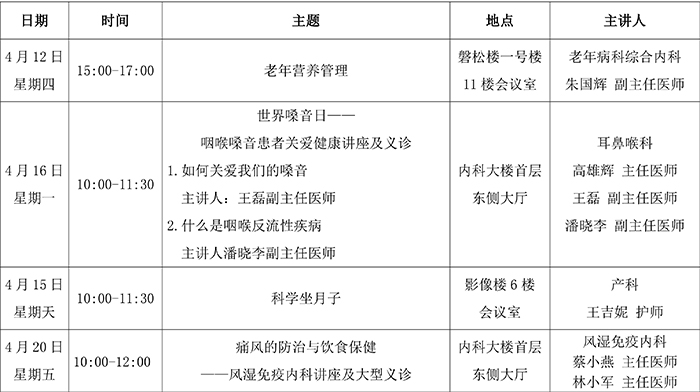 2018年4月健康教育讲座安排