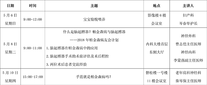 2018年5月健康教育讲座安排