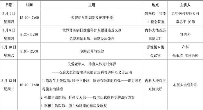 2018年3月健康教育讲座安排