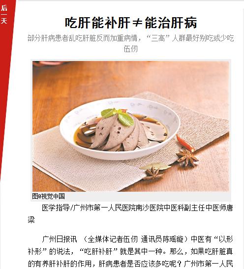《广州日报》:吃肝能补肝≠能治肝病 2018年5月21日A18版