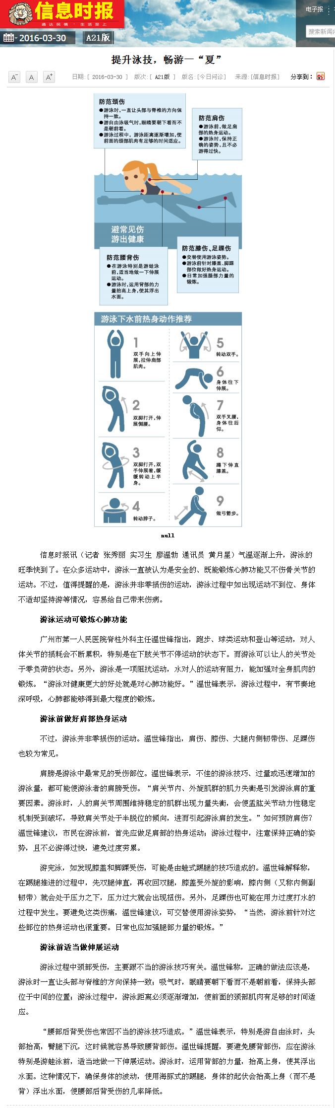 《信息时报》:提升泳技,畅游一“夏” 2016年3月30日A21版