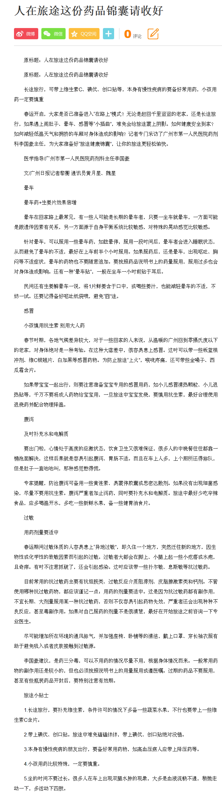 《广州日报》:人在旅途 这份药品锦囊请收好 2017年1月19日B4版
