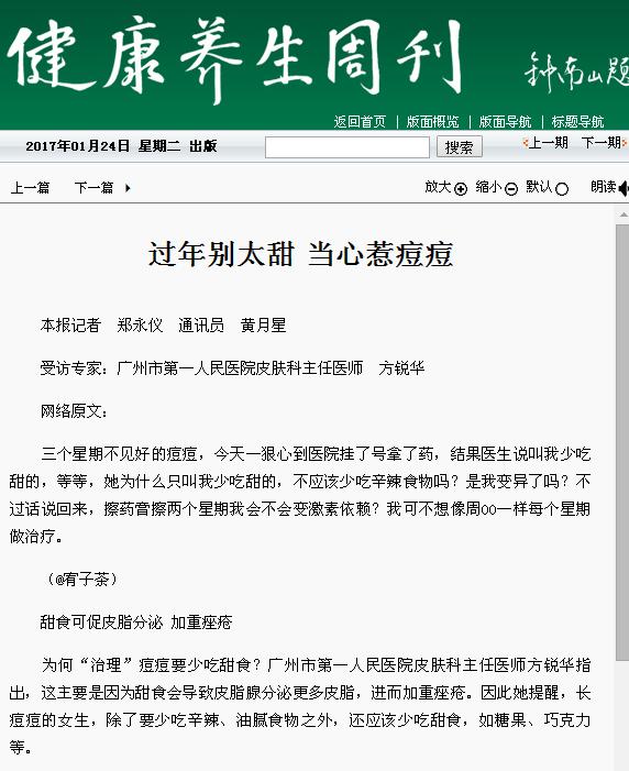《健康养生周刊》:过年别太甜 当心惹痘痘 2017年1月24日B02版