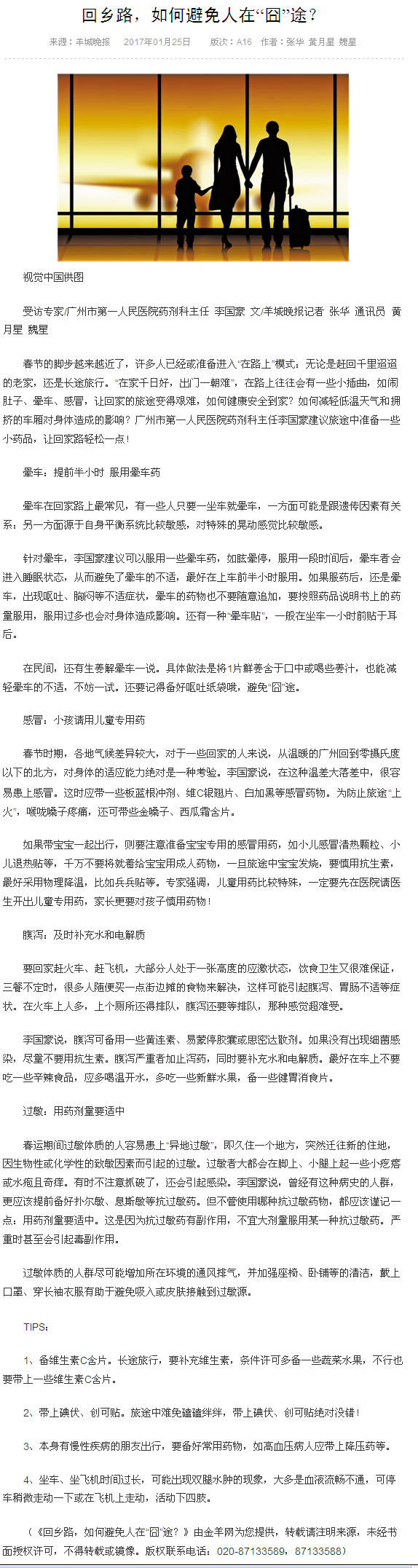 《羊城晚报》:回乡路,如何避免人在“囧”途? 2017年1月25日A16版